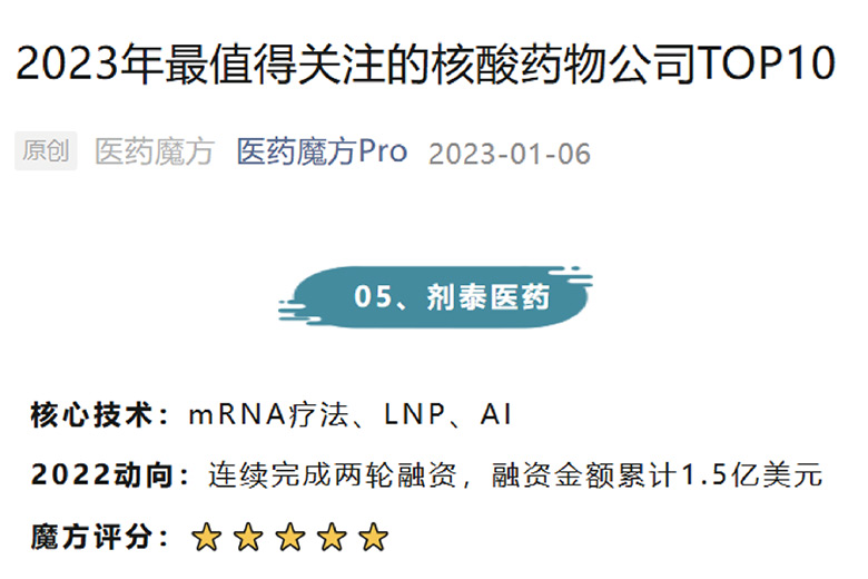 AI纳米递送,开启健康未来。剂泰科技是一家人工智能(AI)驱动纳米材料创新的生物科技公司,专注于利用靶向药物递送和发现技术,加速患者在重要疾病领域获得创新疗法。