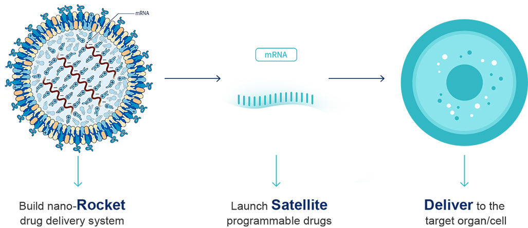Future medicines will use genetic code as the central instruction set, delivered via nucleic acid delivery systems to precisely reprogram diseased cells. This “rocket + satellite” approach relies on specialized LNP nano-carriers—the rockets—loaded with nucleic acid payloads such as mRNA or CRISPR-Cas9 systems—the satellites—for targeted delivery and controlled release.